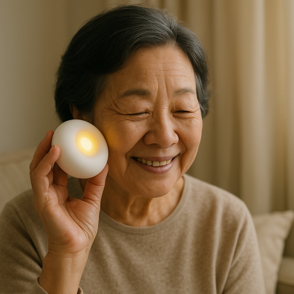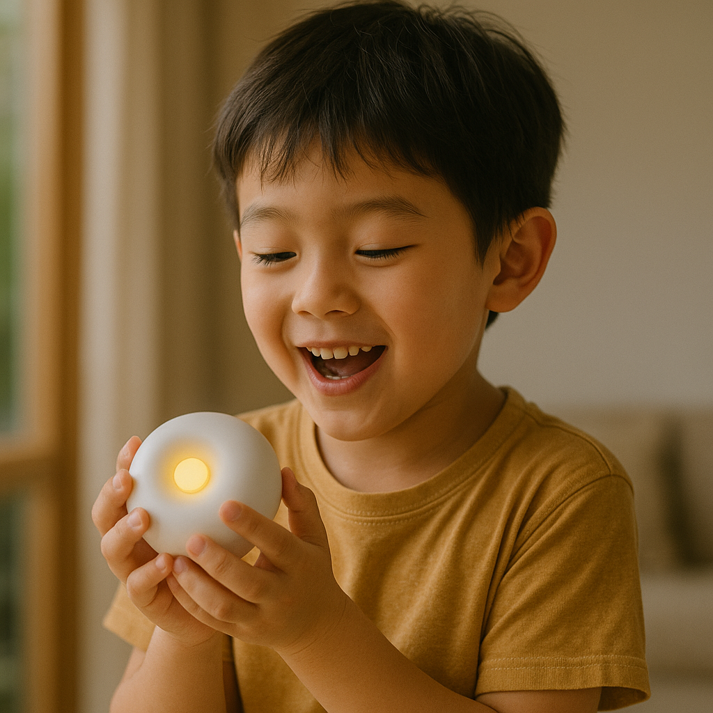 The handheld, palm sized Halo original fits nicely in an adults hand, and can play sounds in a room or whisper to the ear.